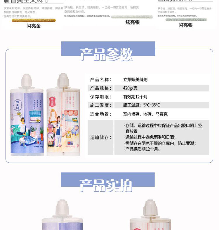 商品名称:立邦甄美缝(珍珠银)瓷砖地砖美缝剂填缝剂双组份美瓷胶厨房卫生间勾缝